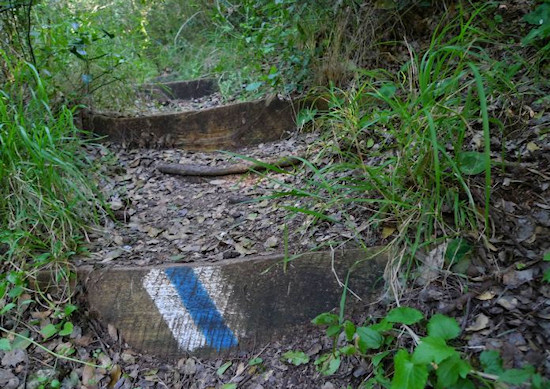 Those who feel tired before reaching the end of this section, may “cut out” from the track through a path marked in green blazes that leads sharply up through ancient terraces to HaYam Rd.