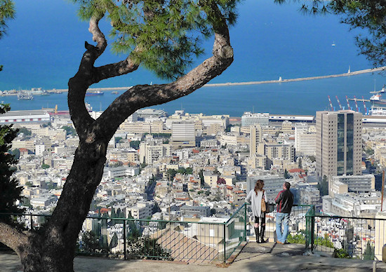 Below is the neighborhood of Kiryat Eliezer with its rows of buildings surrounded by greenery. It was established at the beginning of the 1950s to house port workers.